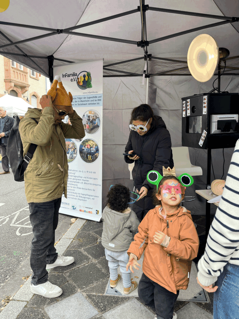 Am Samstag beteiligte sich InFamilia e.V. mit großer Freude an der Feudenheimer Kerwe und lud Besucherinnen und Besucher zu ihrem Stand in der Hauptstraße 47 ein. Bei strahlendem Herbstwetter konnten Interessierte mehr über die Arbeit des Vereins erfahren, der sich seit Jahren für Familien, Kinder und soziale Projekte in Mannheim einsetzt. Neben netten Gesprächen gab es eine Fotobox, die uns Allen sehr viel Spaß bereitete. Das Kinderschminken kam extrem gut an.