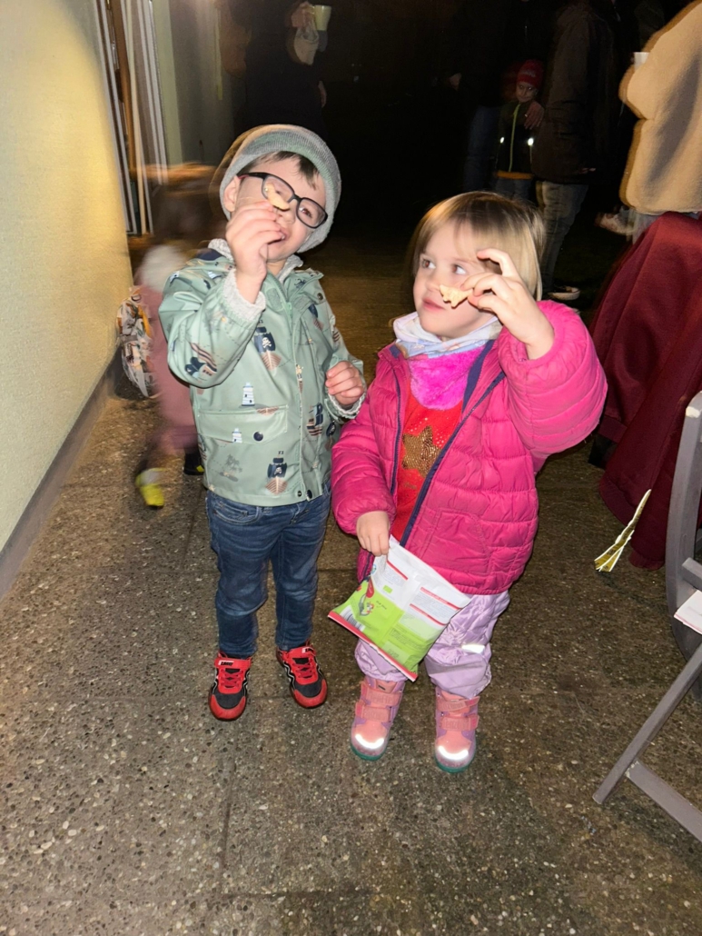 Anschließend ließen alle den schönen Abend gemeinsam mit den Eltern der Villa Asteria bei Kinderpunsch, Laternenlicht und vielen fröhlichen Gesichtern ausklingen.