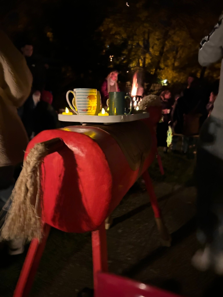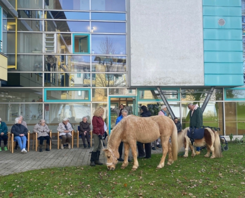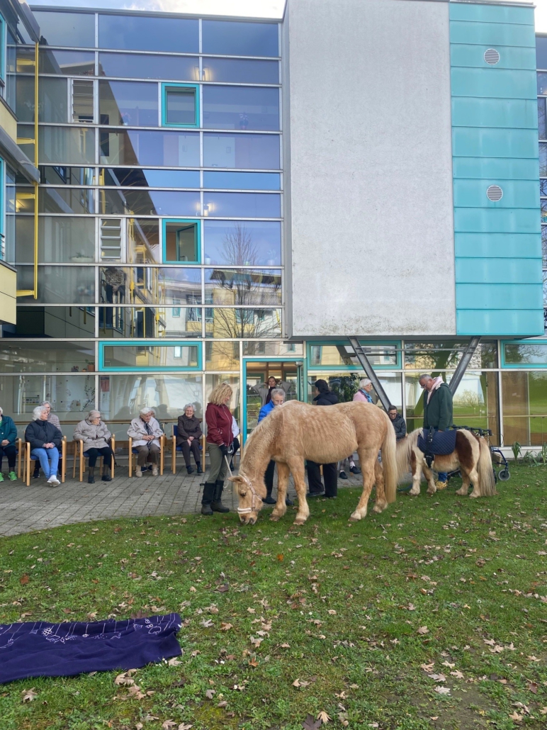 Mit selbstgebastelten Laternen und fröhlichen Liedern zogen die Kinder durch den Garten und brachten Licht und Freude zu den älteren Bewohnerinnen und Bewohnern. Besonders groß war die Begeisterung, als die beiden Pferde Gipsy und Forest auftauchten – die Stars des Nachmittags! Sie begleiteten den Martinszug und sorgten bei Jung und Alt für leuchtende Augen.