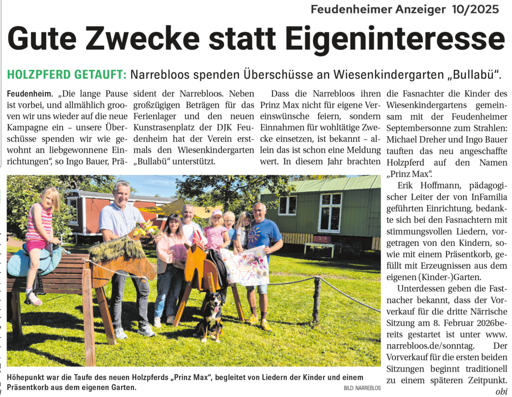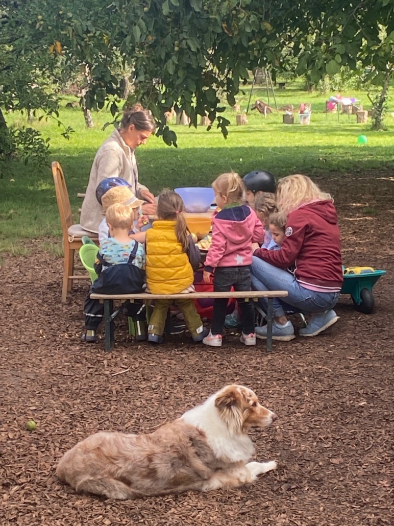 Nach den Sommerferien 2025 hat der Wiesen-Kita „Bullabü“-InFamilia e.V., der im Landschaftsschutzgebiet in Feudenheim 20 Kinder betreut neben der Hündin „Cookie“ noch weitere Verstärkung von zwei Vierhüflern bekommen.