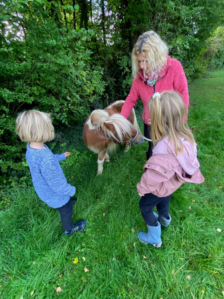 - sie lernen sie zu führen sie und können nach einer Lernzeit unter Anleitung mit dem „Ponyteam“ ihnen im Feldrandlage spazieren gehen